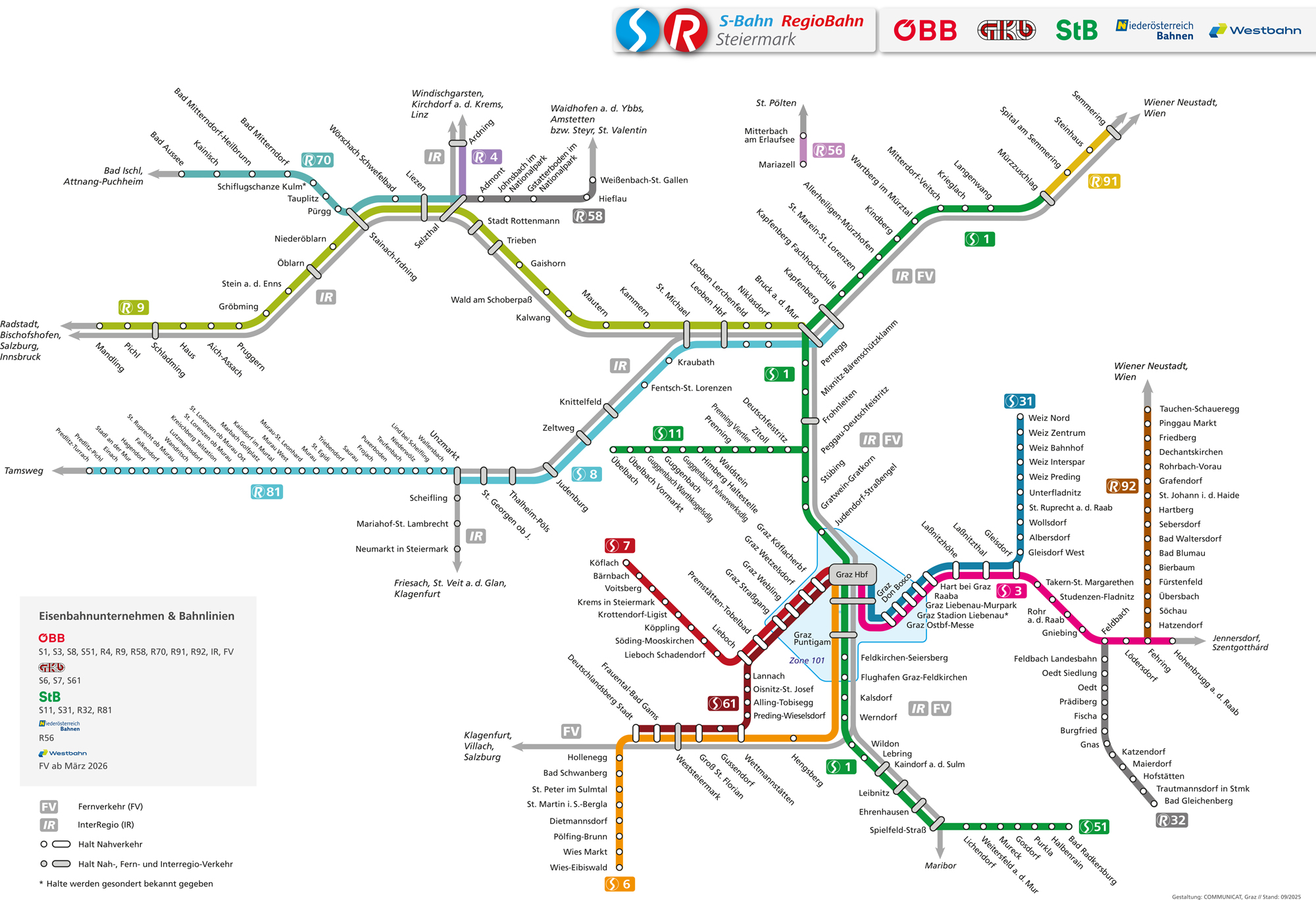Die S-Bahn Steiermark verbindet im Taktverkehr die Landeshauptstadt Graz mit den steirischen Regionen. Im Rahmen des Steirischen Verkehrsverbundes zählt die GKB zu den bedeutendsten Unternehmen und ist der wichtigste Verkehrsträger im Südwesten des Bundeslandes sowie der wichtigste Zubringer zur Koralmbahn.