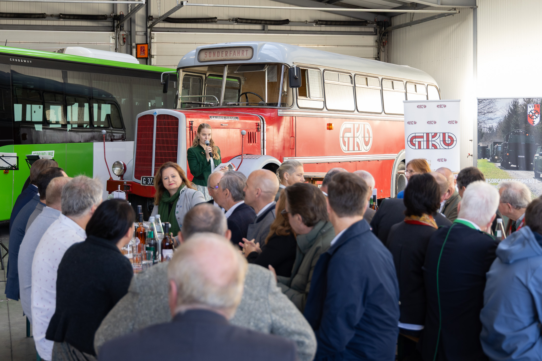 Die Bussparte der Graz-Köflacher Bahn und Busbetrieb GmbH wurde heuer 90 Jahre alt: Begangen wurde der Geburtstag des Busbetriebes am 18. Oktober 2025 mit einem Betriebsstellenfest in Stainz. Gleichzeitig feierte das Unternehmen 15 Jahre Partnerschaft mit dem Versorgungsregiment 1 des Österreichischen Bundesheeres. Geschäftsführerin Dr. Barbara Kleinert und Geschäftsführer Mag. Gerald Klug konnten viele Ehrengäste, Partner, Interessierte und Mitarbeiterinnen bzw. Mitarbeiter zu den Feierlichkeiten begrüßen.